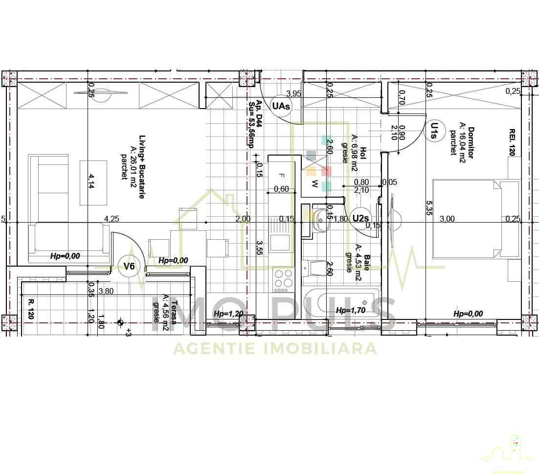 - 2 camere, 51 mp utili + 4.56 mp balcon, disponibil la Et. 1 si Et. 2 - Preturi : 124.775 Euro - 125.000 Euro;