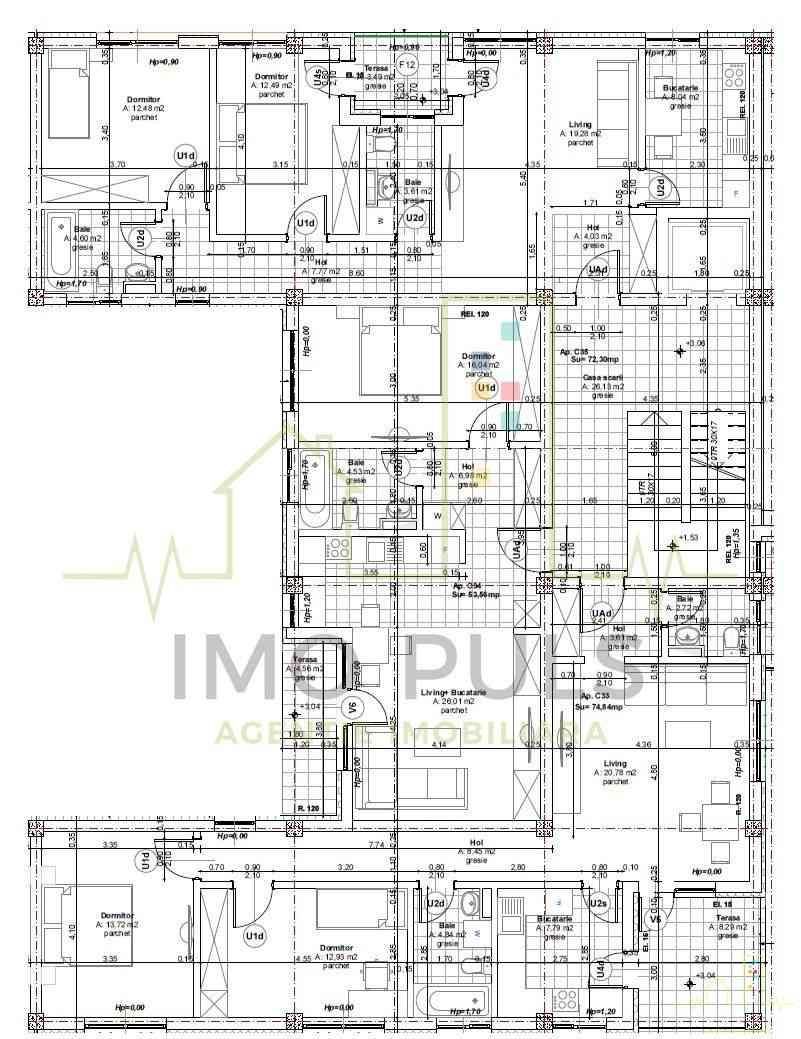 - 3 camere, 73.5 mp utili + 17.32 mp teresa, disponibil la P - Pret : 177.725 Euro;