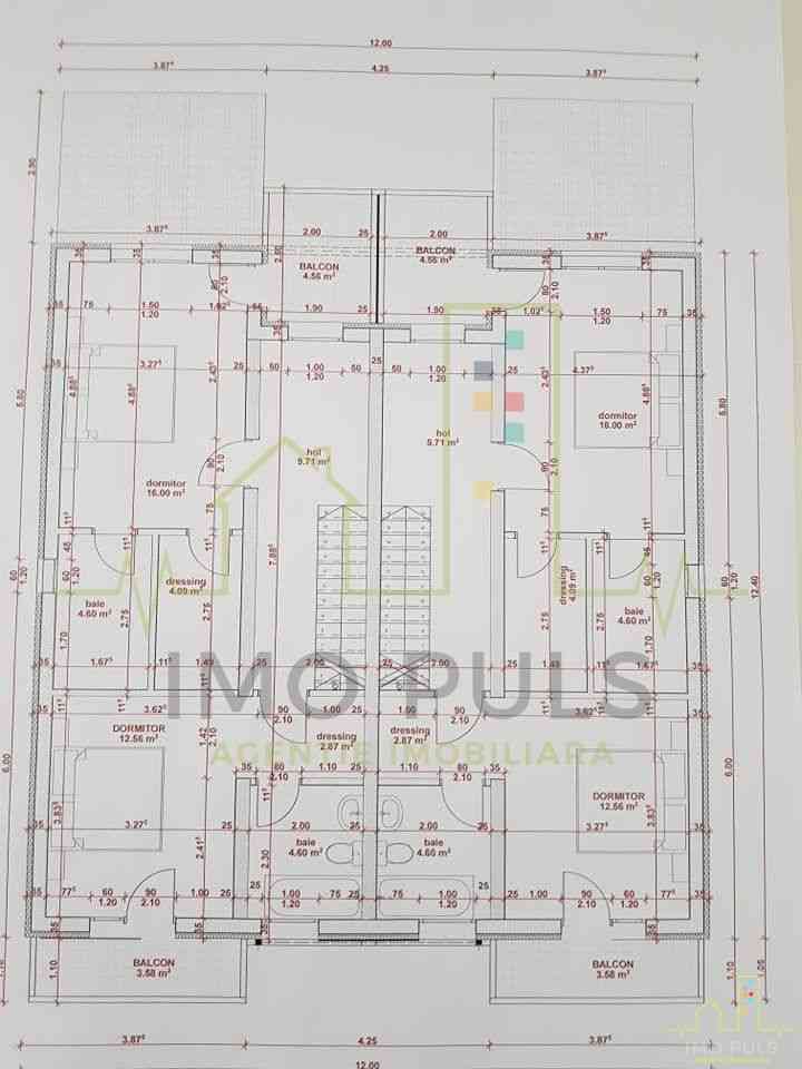 - etaj : hol acces, 2 dormitoare, 2 bai dressing, 2 balcoane;